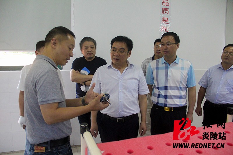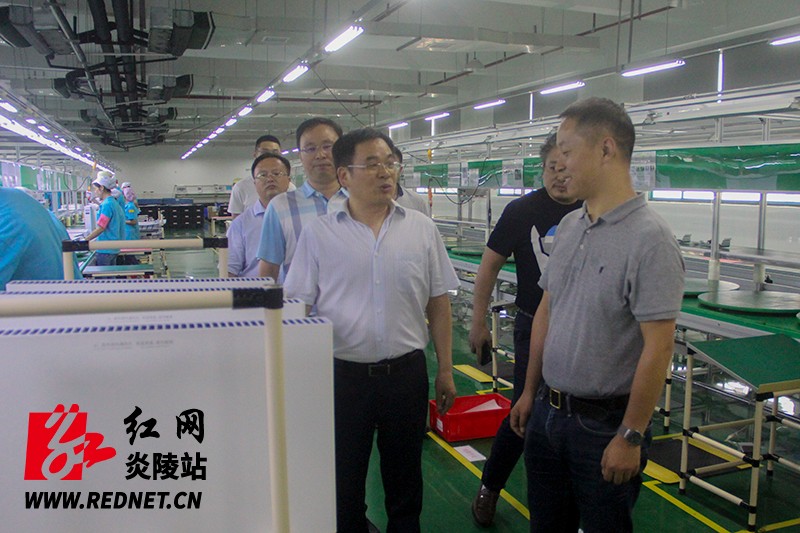 余安兵一行来到炎陵县九龙经开区,考察了园区基础设施建设,并走进湖南全康电子生产车间,查看企业生产经营情况。