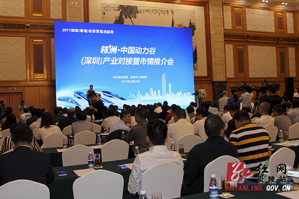 4月28日,2017湖南(香港)投资贸易洽谈周·株洲(深圳)动力产业专题对接推介会在深圳市举行。市政协副主席、县委书记黄诗燕率团参加。