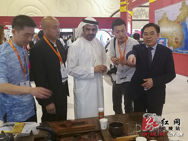 15日,代表团在考察"湖南商品中东展示中心"时,黄诗燕现场推介了进入展示中心的炎陵农特产品——炎陵红茶。"神农尝百草,日遇七十二毒得茶而解之","茶之为饮,发乎神农氏",炎帝神农被中国茶界尊称为"茶祖"。黄诗燕介绍说,炎陵县是炎帝始祖神农氏陵寝所在地,自古与茶结下不解之缘。炎陵红茶有“四个长”:一是源远流长,炎帝神农氏是茶祖,炎帝陵在炎陵,茶文化几千年沿袭; 二是山高水长,炎陵生态环境优越,高山出好茶;三是情深意长,炎陵红茶品质出众,特别好喝,老百姓喜欢;四是地久天长,炎陵人民热情好客,以茶会友,希望与朋友们友谊长存。