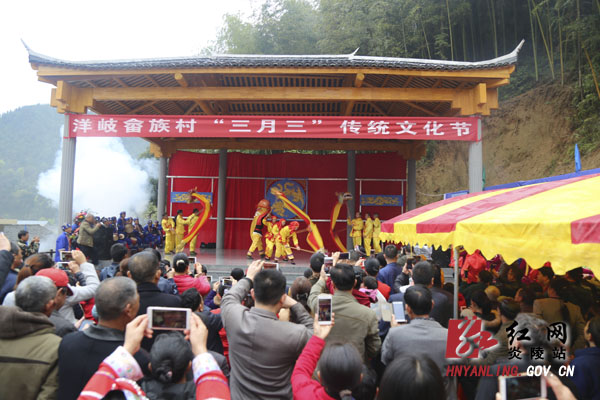 浏览次数: 发布时间:2017-03-30 16:293月30日,十都镇洋岐畲族村村委活动中心附近,人流如织,热闹非常,炎陵县第三届"三月三" 畲族文化节活动正在这里举行。身着节日盛装的畲民齐聚一堂,开展了祭祖、舞龙、美食品尝等活动,用充满民族风情的方式来庆祝这一传统民俗节日。