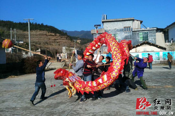 二是香火龙闹春,热火朝天。舞龙是下村乡春节的传统民俗文化活动,今年下村乡组织了3支香火龙、1支布龙表演队,参加人员120余人,在正月初一至十一,进村入户100多户、表演200余场,热闹非凡。