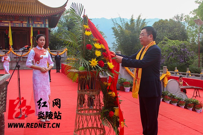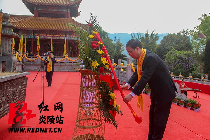 伴着悠扬的古乐,市政协副主席、县委书记黄诗燕,县委副书记、县长文专文分别向始祖炎帝神农氏敬香、敬献花篮。接着,县人大常委会主任戴诗平,县政协主席欧阳鹏志依次向始祖炎帝神农氏敬献花篮。全体祭祖人员向始祖炎帝神农氏深鞠三躬,虔诚致敬。