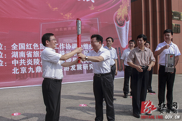 随后,湖南省旅游局巡视员刘绵松宣布:炎陵县红色旅游火炬传递活动正式开始!现场气氛达到高潮。