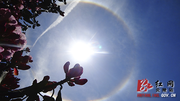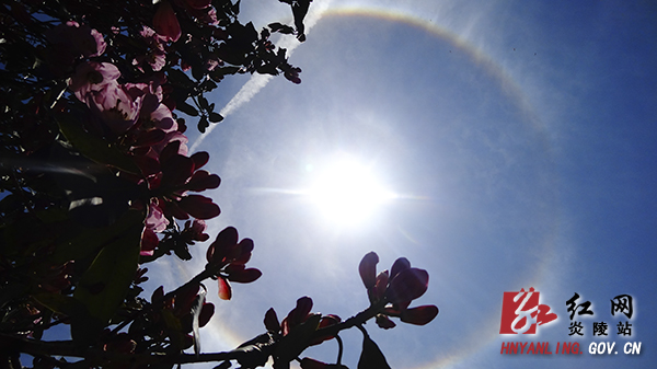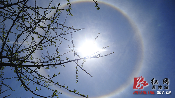 气象部门介绍,日晕也叫圆虹,是一种大气光学现象,是太阳光通过卷层云时,受到云层冰晶的折射或反射等物理变化而形成的,因云层内部冰晶结构的不同,会呈现出不同的光景效果。梨树洲上空出现这样的奇景,是由于前几日雨水暂歇,这两天虽然刚刚放晴,但又即将迎来新的阴雨天气,空气中的水汽含量越来越高,市区上空形成蕴含冰晶的高空卷层云,太阳光经过冰晶的折射和反射,最终在太阳周围形成一个巨大的彩色光环。当其形成的气象条件消退,日晕奇观也随之消失。