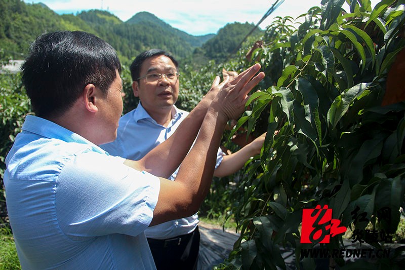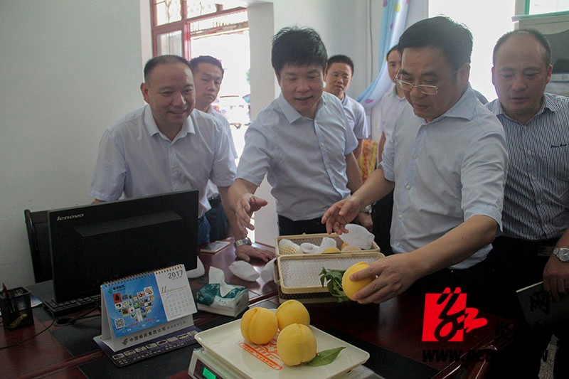 黄诗燕还视察了平乐村炎陵黄桃示范园,了解黄桃种植和订单销售情况。他强调,炎陵黄桃为炎陵县贫困户脱贫做出了重要贡献,已经成长为炎陵县农业支柱性产业之一。我们要继续发挥黄桃产业的带动效应,坚持政府引导、市场主导、"两老"为主体的原则,充分发挥公司、合作社、大户的带头作用,带动更多贫困群众参与黄桃种植,建立利益联结机制,通过产业的可持续发展,实现脱贫攻坚巩固提升。