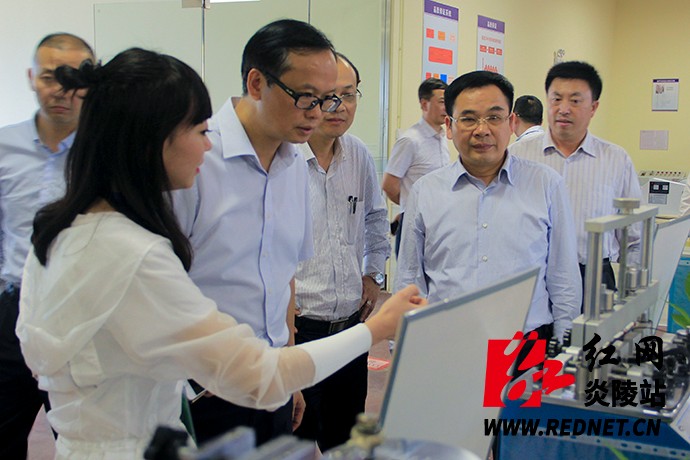在炎陵县工业集中区,覃万成先后来到国声声学、全康电子等企业进行现场调研,详细了解企业生产经营情况和长远发展规划。黄诗燕说,国声声学和全康电子两大项目签约引进后,县委、县政府高度重视,积极为项目落地创造优良条件,促使项目签约后短短两三个月时间就投产见效,在安置就业、增加税收、完善园区产业链等方面发挥了重要作用。覃万成对此表示高度肯定,认为炎陵县引进项目规模大、质量高、效益好、见效快,园区工业在株洲市五县市具有重要地位。覃万成还视察了炎陵工业集中区党群和企业服务中心、园区产业公司。