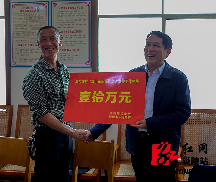 随后,康月林代表醴陵市委、市政府向黄沙垅村捐赠了10万元帮扶资金。
