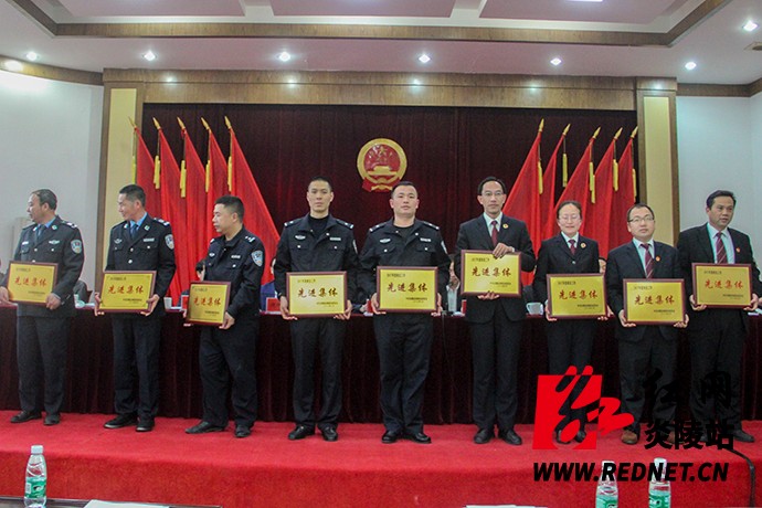 会上,县委常委、政法委书记谭新林作政法工作报告。报告总结回顾了2017年政法工作,客观分析全县政法工作面临的形势,明确了2018年政法工作任务和举措。会议宣读了《炎陵县扫黑除恶专项斗争工作方案》《关于表彰2017年度全县政法工作先进集体和先进个人的决定》《关于表彰盘刘磊同志见义勇为行为的决定》;对2017年度全县政法先进集体和盘刘磊同志进行了颁奖;县纪委、县公安局、霞阳镇负责人分别作扫黑除恶专项斗争表态发言。