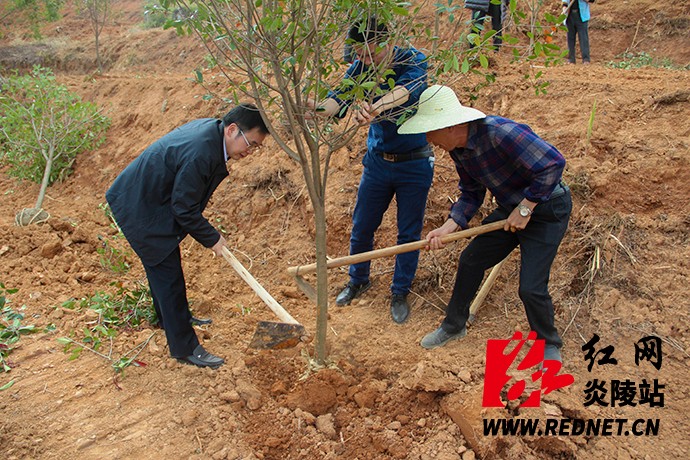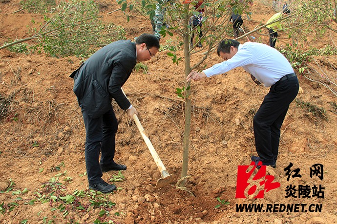 黄诗燕说,植树造林功在当代,利在千秋,保护好炎陵的青山绿水就是造福后代。炎陵县是山区县,也是生态大县,全县有260万亩山林,森林覆盖率达83.55%,居全省第一。各级各部门要紧紧围绕乡村振兴战略中生态宜居的内容,进一步保护好、提升好、管理好生态,使生态优势成为炎陵的发展优势、竞争优势。炎陵是个大花园,绿水青山是炎陵最大的金字招牌,把生态建设好、保护好了,才能做大做强旅游产业,老百姓才能安居乐业。全县上下要积极行动起来,齐心协力为全面建设美丽幸福新炎陵增添更多绿色,让炎陵的天更蓝、地更绿、水更清、空气更清新、环境更优美、人民更幸福。
