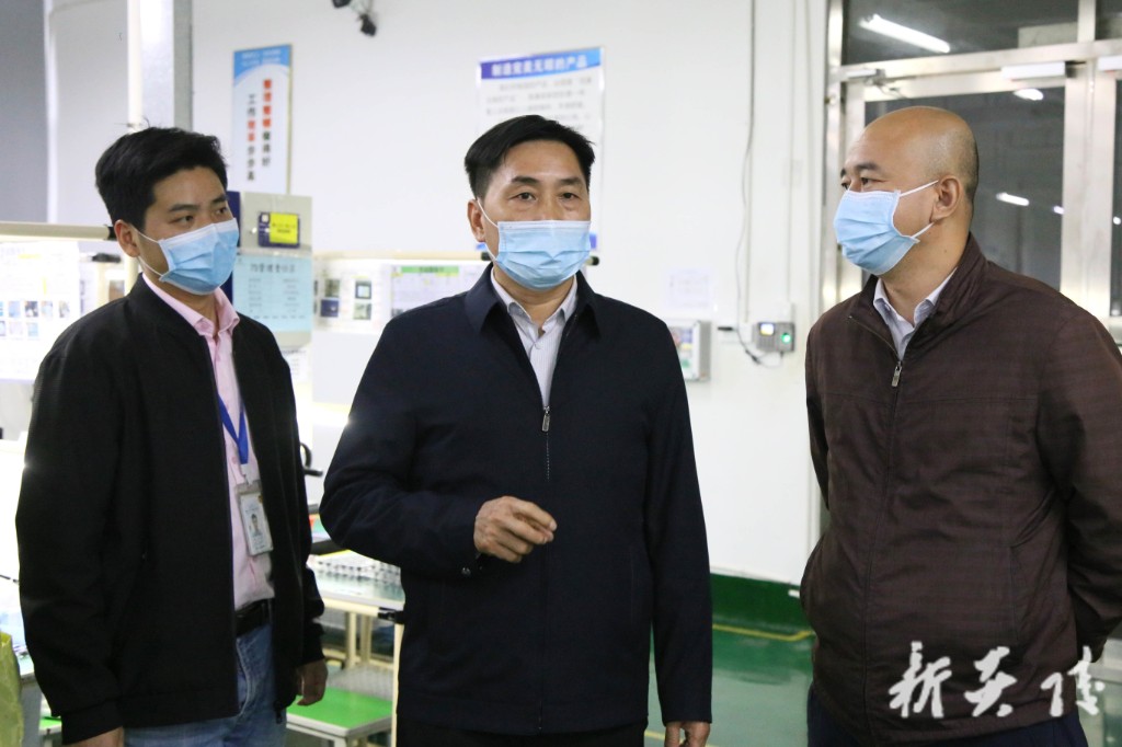 在国声声学科技有限公司,尹朝晖在企业负责人的陪同下,参观了产品展厅和生产车间,详细了解企业疫情防控、复工复产和市场销售等情况。他强调,当前炎陵疫情防控工作成效明显,但决不能掉以轻心。要继续按照"外防输入"要求,抓好常态化疫情防控,落实好各项精准防控措施,确保企业复工复产安全平稳有序。