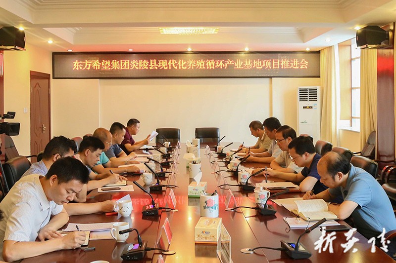6月24日,东方希望集团炎陵县现代化养殖循环产业基地项目推进会召开。县委副书记、县长文专文参加。