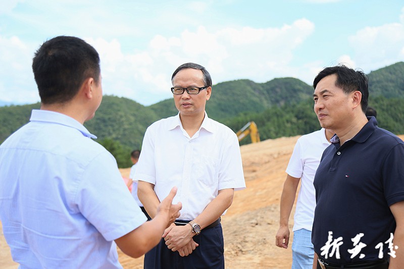 8月20日,市委常委、市委统战部部长覃万成在鹿原镇调研东方希望炎陵县现代化养殖循环产业基地项目,县委书记尹朝晖参加。