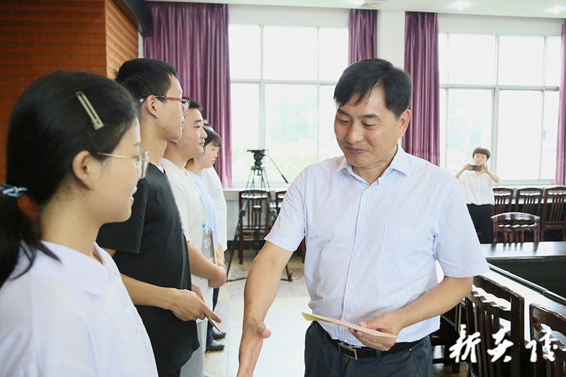 在县教育局,尹朝晖看望慰问了贫困大学生和家长代表,并向他们发放励志奖金。尹朝晖代表县委、县政府向现场大学生代表及全县高考上线大学生表示祝贺!他勉励全体学子要常怀感恩之心,感恩父母养育、感恩老师教育、感恩这个好的时代;要常怀进取之心,大学是人生一个新的起点,要认真对待专业学习,积极参加校园活动,不断提升自身的综合素质,展现炎陵学子的良好形象;要常怀敬畏之心,学会敬畏自然、敬畏生命、敬畏法纪,严格遵守学校各项规章制度;要常怀回报乡梓之心,努力用大学期间的所学所获助力家乡发展,回报父老乡亲。