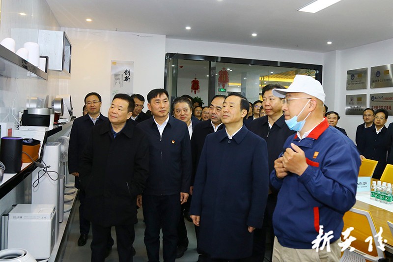 1月3日,许达哲一行来到炎陵县,走访了九龙工业园的湖南全康电子科技有限公司、湖南国声声学科技股份有限公司等企业,考察产品展示区、组装车间、扶贫车间等地,详细了解企业生产经营和助力贫困劳动力就业等情况。