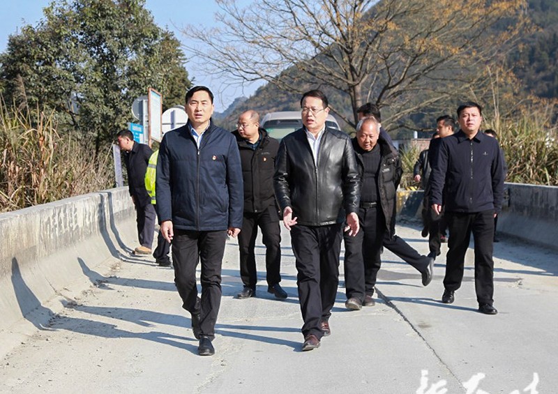 1月15日,县委书记尹朝晖率交通、应急管理等部门负责同志,在鹿原、船形等乡镇调研S205公路建设工作。