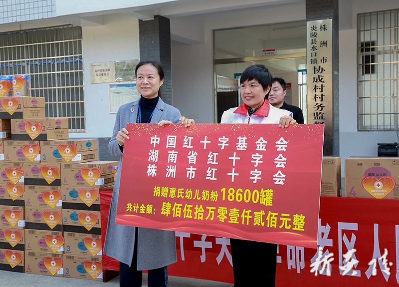 尹朝晖代表县委、县政府和20万老区人民,对中国红十字基金会和省、市红十字会,以及爱心企业的善举表示衷心感谢。他说,这是一次践行初心的大好事。炎陵是一方红色热土,水口是毛主席把支部建在连上的实践之地。这次捐赠慰问活动,就是一次以爱心践行初心的善举和义举。这是一次奉献爱心的大好事。这次爱心捐赠,给我县的儿童、病患等特殊群体送来了关爱和温暖,充分彰显了“回报社会、奉献社会”的企业精神和“人道、博爱、奉献”的红十字精神。这是一次凝聚信心的大好事。炎陵已进入巩固拓展脱贫攻坚成果同乡村振兴有效衔接的新阶段。我们坚信,在市红十字会、株洲川渝商会的带动下,会有更多的社会扶贫力量支持炎陵、帮助炎陵,共同绘就乡村振兴的“壮美画卷”。