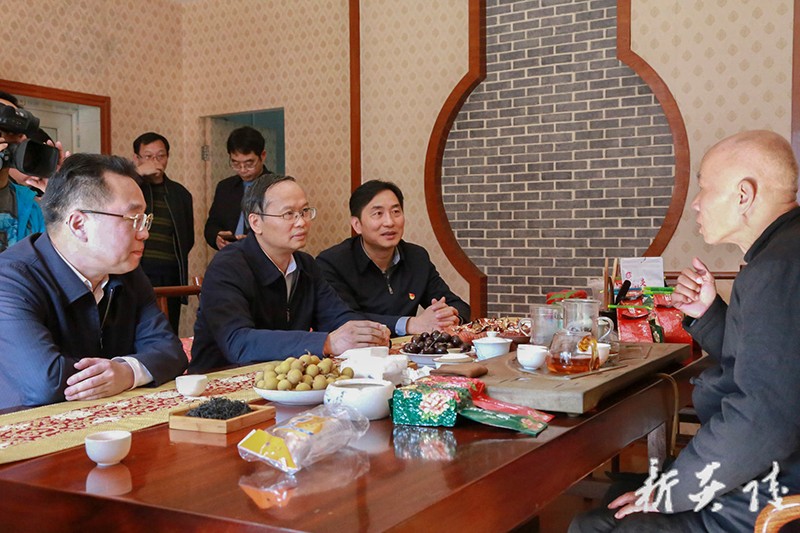 覃万成代表市委、市政府向古胜潭表示慰问,感谢他为炎陵茶叶产业发展做出的贡献,并祝他新春快乐、身体健康、家庭幸福。