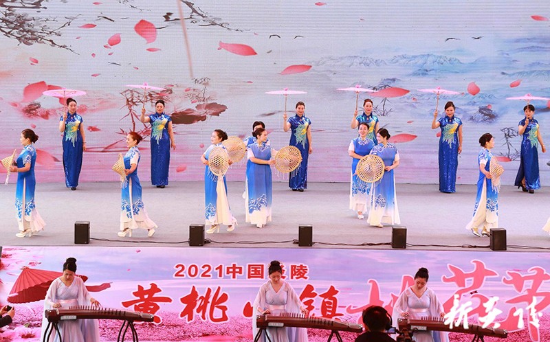 上午10时,2021湘赣边区域合作示范区中国炎陵·黄桃小镇·桃花节在青春时尚的歌舞表演中拉开序幕。