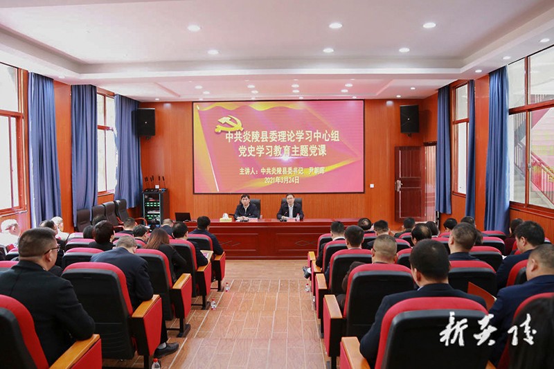 揭牌仪式后,县委常委会在炎陵综合培训中心开展党史学习教育“学史明理”专题学习研讨暨县委理论学习中心组(扩大)学习。县委书记尹朝晖以“学史明理 接续奋斗”为主题,为全体学员讲了一堂生动的专题党课。县委副书记、县长文专文主持学习。