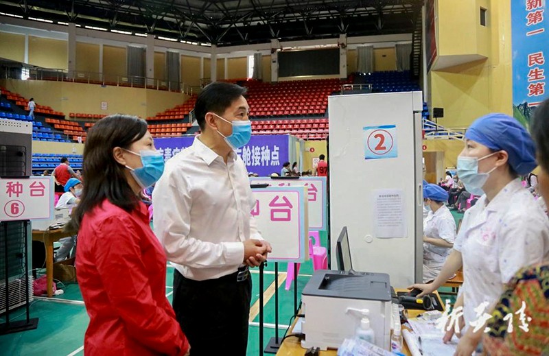 尹朝晖还详细询问了疫苗方舱接种点接种情况,并与前来接种疫苗的市民进行交流。尹朝晖说,疫苗接种是一件利国利民的大好事,希望大家听从乡镇、村、社区安排,有序接种疫苗,同时做好相关科普宣传,争取早日实现我县疫苗接种全覆盖。