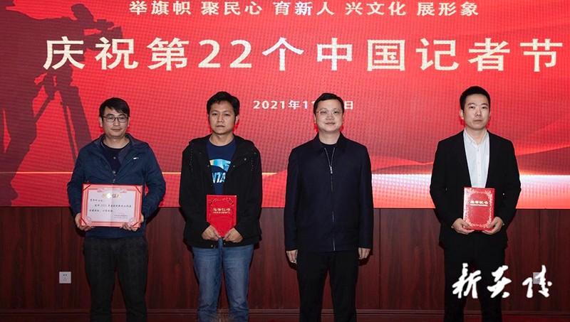 ▲县委副书记、县长夏胜利为优秀新闻工作者颁奖