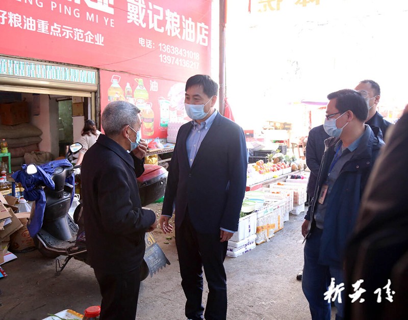 ▲在井冈路农贸市场督查疫情防控工作
