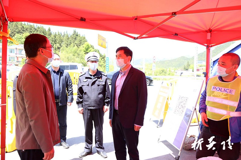 4月4日,县委书记尹朝晖在县人民政府总值班室参加全市安全稳定、经济社会运行工作视频调度会,会后,在城区及部分交通卡口督查交通安全和疫情防控工作。