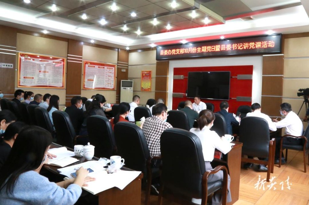 浏览次数: 发布时间:2022-10-29 16:1810月27日,县委书记尹朝晖参加县委办10月份主题党日活动,并为全体党员干部讲党课。他强调,县委办全体同志要深入学习宣传贯彻党的二十大精神,尽心尽职做好“三服务”工作,为炎陵高质量发展提供坚强保障。