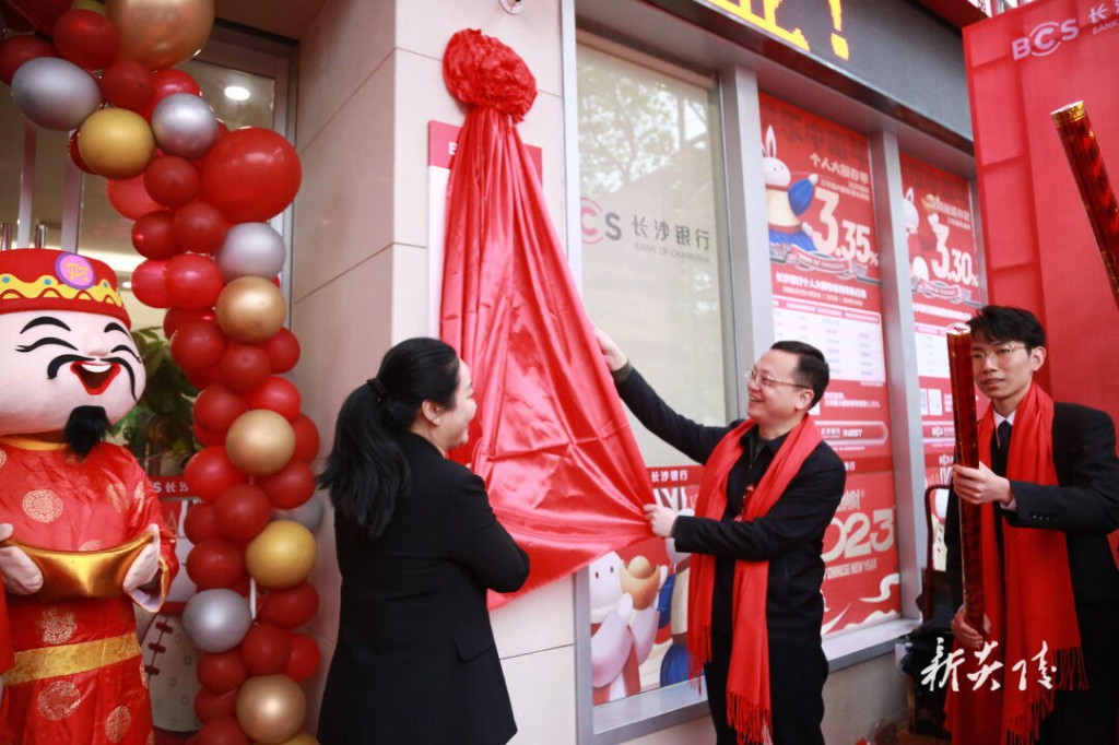 上午10点28分,夏胜利与刘军共同为长沙银行炎陵支行揭牌。