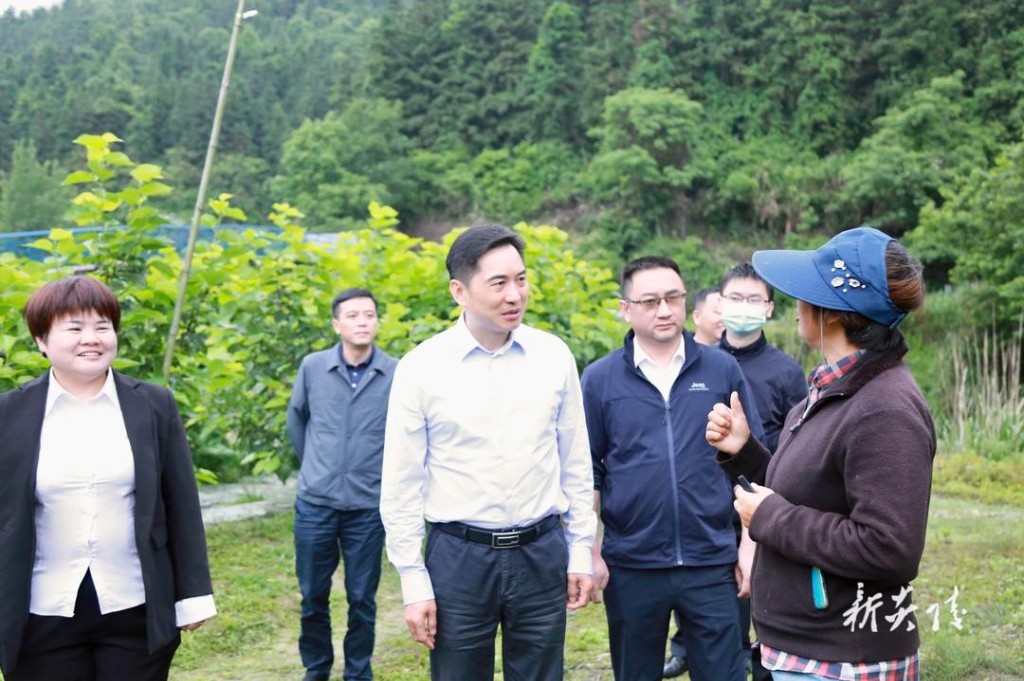 在大江村,尹朝晖调研了村里的特色水果采摘园和艾叶基地发展情况。近年来,大江村因地制宜发展特色种植,特色水果采摘园种植各类水果约80余亩,带动附近村民务工增加收入。艾叶基地计划种植120亩艾叶,预计年产值可达20万元以上。尹朝晖勉励采摘园和基地负责人,要密切对接市场需求,持续提升种植效益,带动更多农户参与,分享产业发展红利。