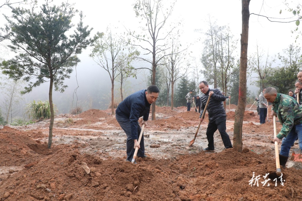 植树间隙,尹朝晖指出,全县上下要以实际行动践行习近平生态文明思想,树牢“绿水青山就是金山银山”的理念,坚定不移走生态优先、绿色发展之路。要做好旅游结合文章,持续开展古树名木普查建档和保护巡查工作,深挖其中的故事传说,结合旅游产业发展,盘活古树资源,使生态优势成为炎陵的发展优势。要严格落实“林长制”责任,加快推进“绿水青山就是金山银山”实践创新基地创建,持续巩固国家生态文明建设示范区创建成果和造林绿化成果,全面提升造林质量,让绿色成为炎陵高质量发展的最美底色。
