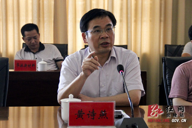 黄诗燕强调,抓经济必须抓工业、抓工业必须抓园区、抓园区必须抓项目、抓项目必须抓保障、抓保障必须抓环境。他指出,工业是第一推动力,工业是发动机。要坚持"一手抓新型工业、一手抓旅游产业"的发展理念,紧扣"产业新城、城市新区"的发展定位,着力优化产业结构,提升企业自身素质,不断加大园区及企业的基础设施配套建设。要一手抓"老"项目,一手抓"新"项目,坚持环保底线,把园区做大做强。要抓好电力、融资、人才、供地等核心保障,确保企业在炎发展具有相对优势。要提高企业和企业家在炎的经济、政治、社会地位,不断优化发展环境,深入开展"一严三打"大行动;政府及各部门要提供高效、优质、放活的服务,依法办事,对园区企业推行"四不"政策,即不检查、不罚款、不收费、不关停的特殊优惠政策。