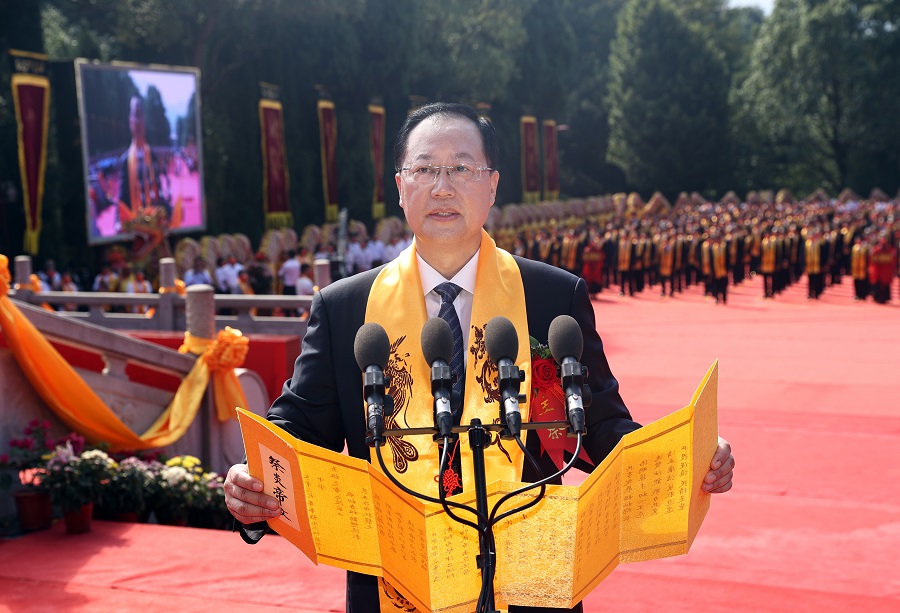惟公元二〇二一年,岁在辛丑,九月吉日,湖南省人民政府省长毛伟明偕全省各界代表,敬具太牢之礼、尊奉雅乐之仪,恭祭于中华圣祖炎帝之陵前,曰: