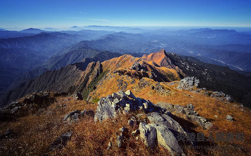 伫立山顶,放眼远眺,正如清人洪钟的诗句所言:"峭壁万仞鬼斧劈,鸟道飞悬不盈尺。"下方云海涌动,奔腾流转,沿着山体倾泻,如同滔滔巨浪袭来,恰似纵览百年间风云变幻,令人心神震撼。