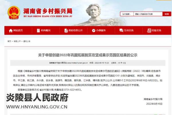 炎陵县成功申报2022年巩固拓展脱贫攻坚成果示范园区