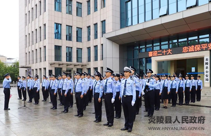 10月7日上午8点,炎陵县公安局举行升国旗仪式,庆祝中华人民共和国成立73周年。县人民政府副县长、公安局党委书记、局长董智率局领导班子成员、局属各单位负责人以及民警代表100余人参加升旗仪式。