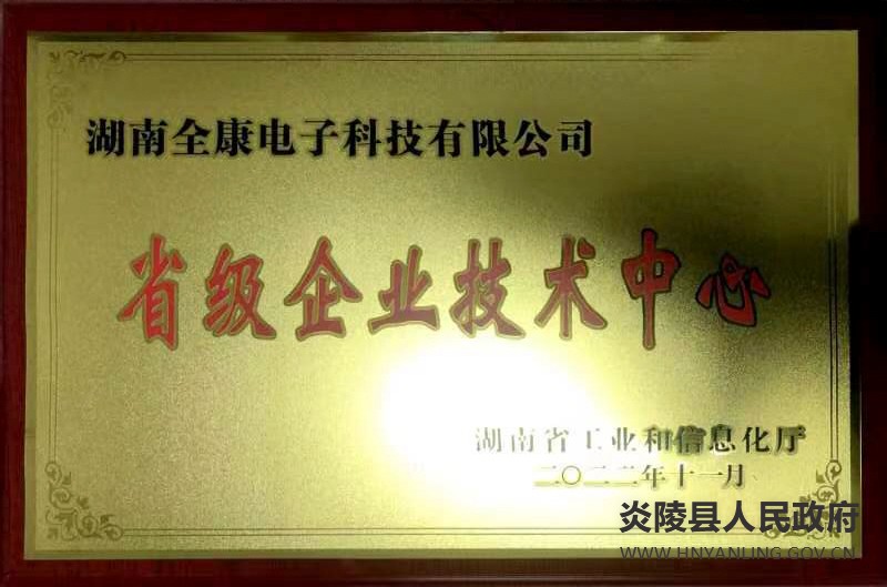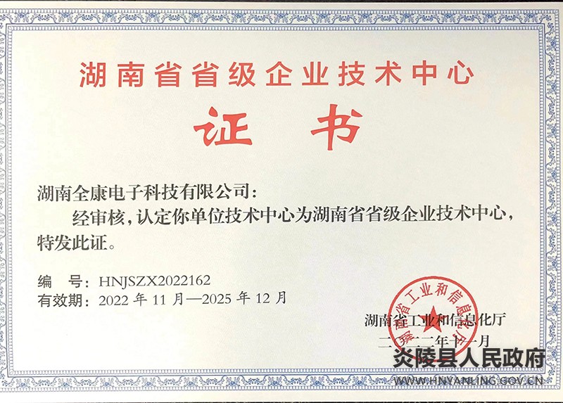 喜讯:湖南全康电子成功认定为湖南省省级技术中心