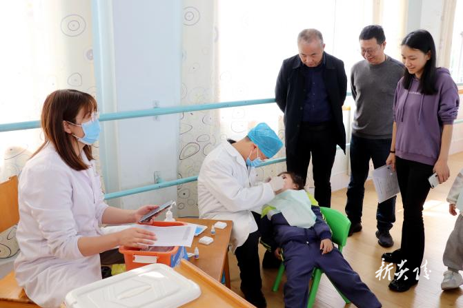 在炎陵县示范幼儿园,检查组实地查看了项目实施成效,从涂氟覆盖率、口腔健康知识问卷调查、现场刷牙三个方面进行评估、督导。