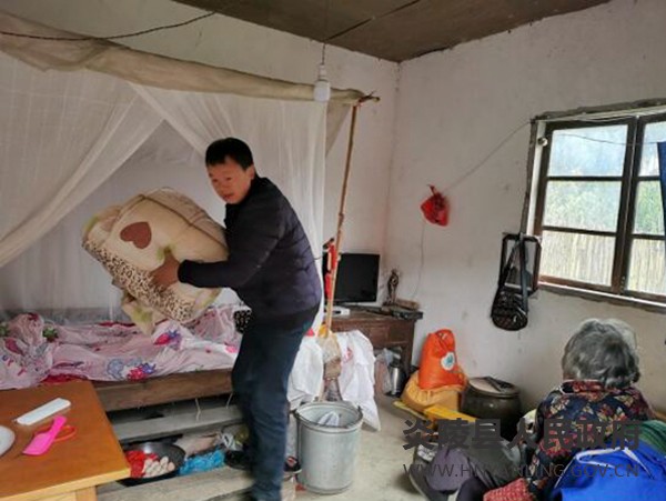 正值寒冬腊月,水口镇村干部一同来到了水口镇官仓下村特困户郭金兰的家中。