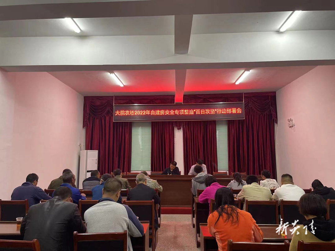 大院农场召开自建房安全专项整治暨拆违保安“百日攻坚”行动动员部署会。会上解读了《炎陵县开展自建房安全专项整治“百日攻坚”行动方案》重点内容,安排部署了全场自建房安全隐患专项排查整治工作,并详细开展自建房排查业务培训。