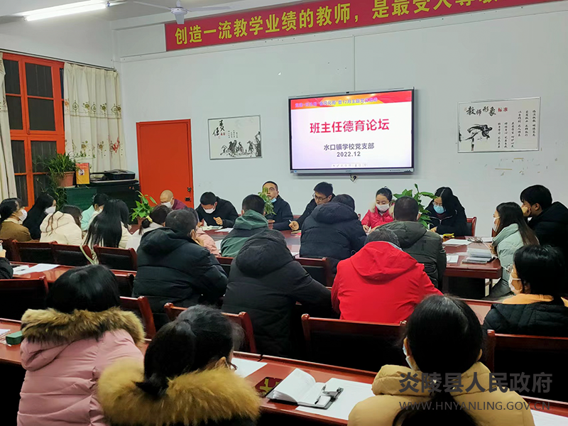 浏览次数: 发布时间:2022-12-08 15:33为加强党对教育工作的全面领导,进一步增强党组织政治功能,推进党建与立德树人相融合,充分发挥班主任在学校教育和管理工作中的重要作用,切实提升班主任的专业素养和管理水平,12月4日,炎陵县水口镇学校开展2022年下学期“党建+班主任”德育论坛暨12月主题党日活动,各年级班主任、全体党员教师及全体行管人员参加活动。