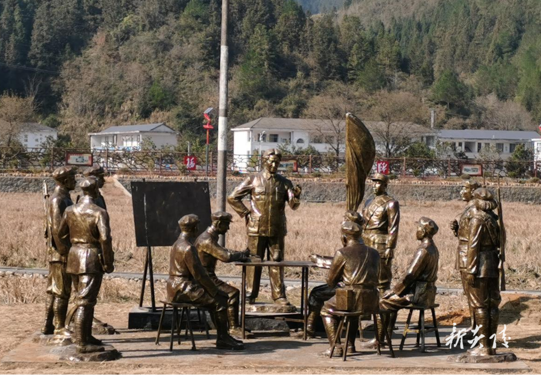 近日,中村瑶族乡已完成军心广场建设,广场的大型雕塑真实再现了毛主席给部队上政治课的历史场景。