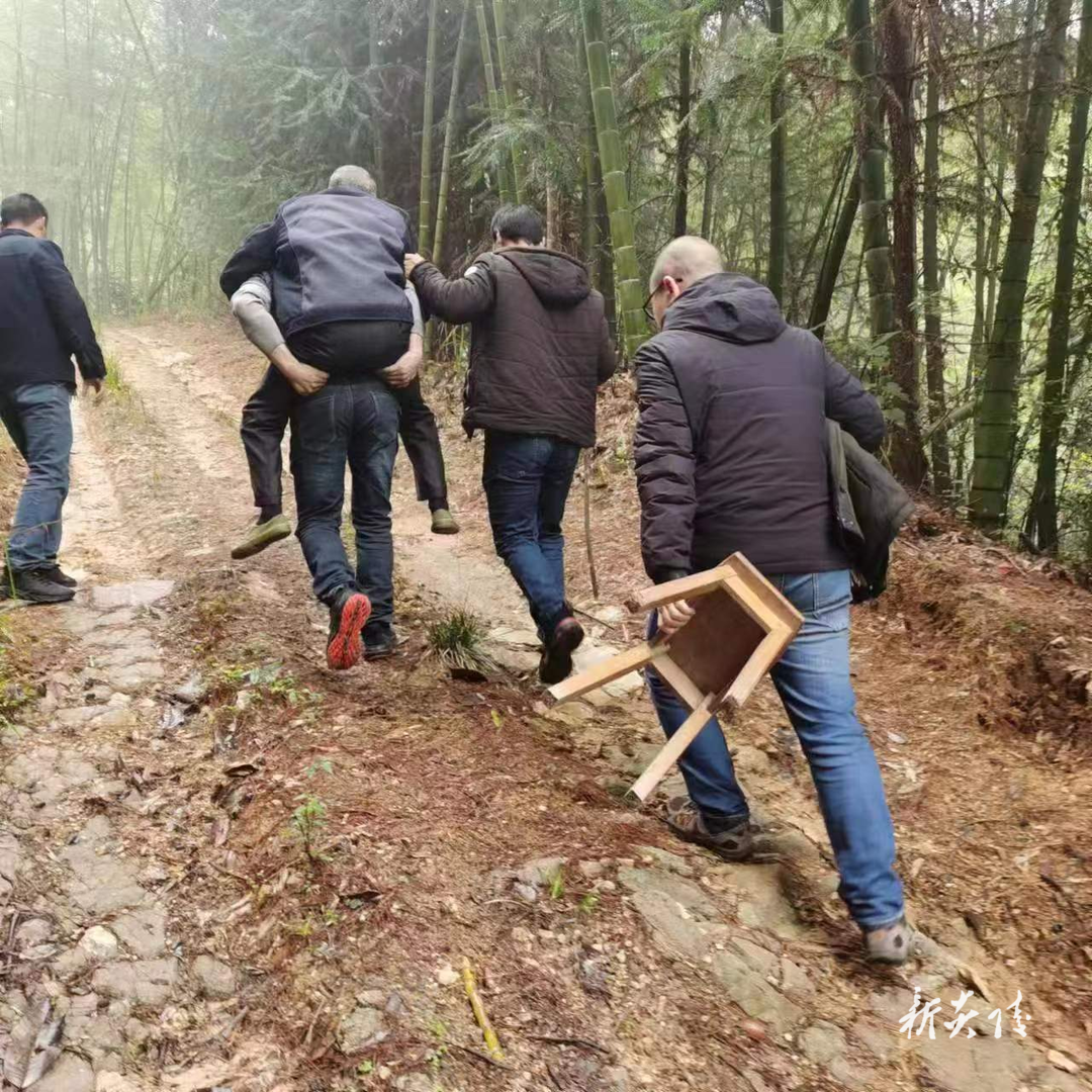 接到电话后,驻村帮扶工作队立即前往朱某家中,一边宽慰着焦急的家人,一边商量着如何安全地把老人送去医院。老人的生命安全刻不容缓,荣塘村驻村工作队队长邓冬平不假思索地背起老人,走在泥泞的道路上。其余队员随时关注路面情况,提防落石和山体滑坡,并安抚老人的情绪,步行三公里过后,老人安全地从其家中转移至车上,送至县人民医院就诊。目前,老人身体状况平稳,已脱离生命危险。