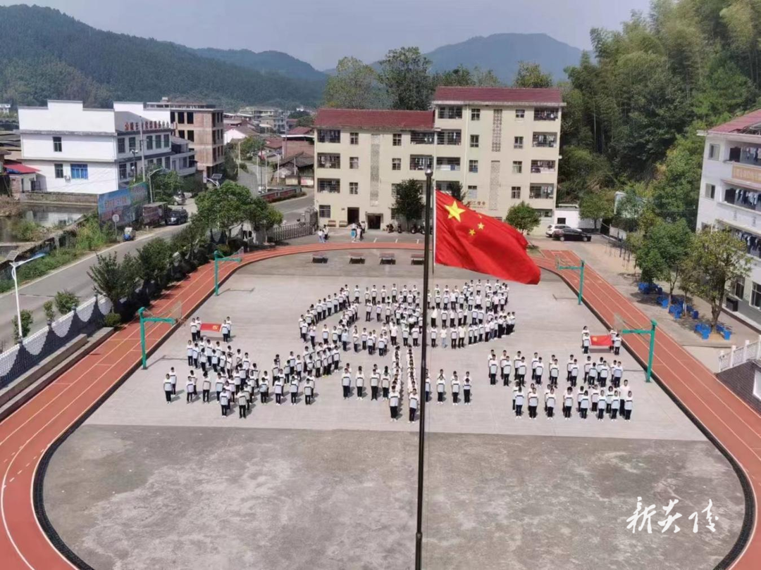 活动当日,镇中学组织师生在操场上、国旗下,排列出二十大人形字样,为祖国的繁荣昌盛献上最诚挚的祝愿。