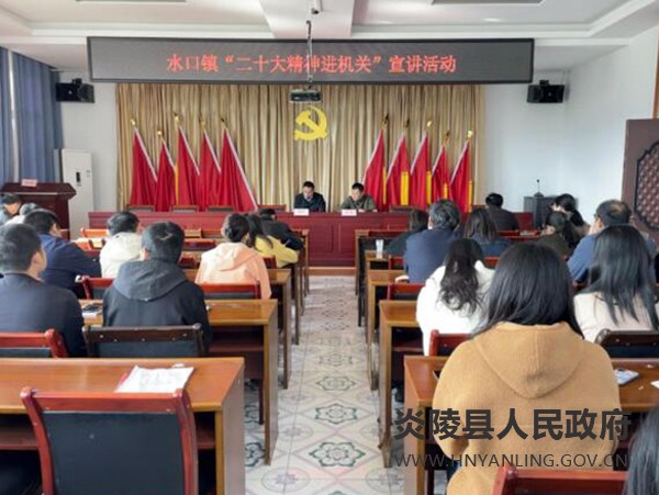 为深入学习宣传贯彻党的二十大精神,切实把广大党员干部的思想和行动统一到贯彻落实党的二十大精神上来,近日,水口镇主要领导开展党的二十大精神宣讲进机关活动,力求通过共同深入学习宣传贯彻党的二十大精神,切实把大会精神转化为工作思路、具体对策和实际行动。