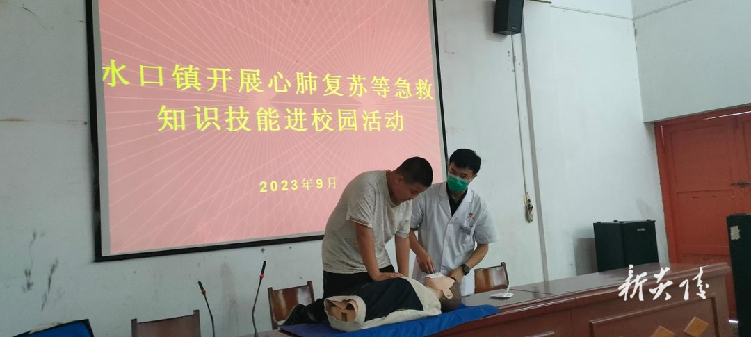 9月19日下午,水口镇联合水口中心卫生院及炎陵县中医医院走进水口镇中学,为教职工及学生们开展心肺复苏等急救知识技能培训活动。