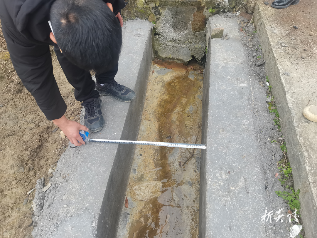 在上馆村花园组、排上组、坪上组、罗家源组,村支两委、省派驻村工作队、镇驻村干部以及镇相关站办所工作人员正在对新修水渠进行验收,验收组人员严把工程质量关,每条水渠仔细测量并一一记录在册,目前全部验收合格。