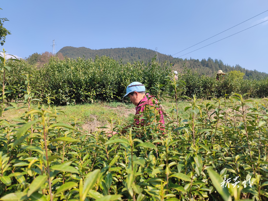 “我就住这个附近,每年都会来这里采茶,一天可以采两三斤,收入也能有90多元,挺好的!”新生村村民83岁的黄秀花一边采茶,一边高兴地说道。