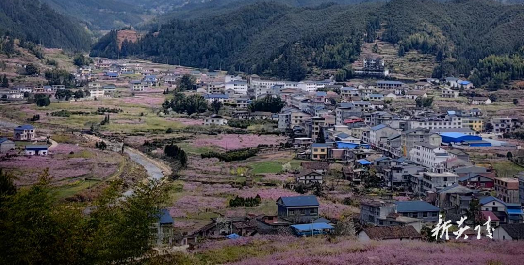三月,阳光明媚,若沿着水盘公路行进在茫茫峻岭间,几番蜿蜒豁然开朗时,便会闻得盈盈春风送来浓郁芬芳,瞧见满眼装不下的桃红与李白,那是万亩桃李竞相开放,在这苍莽罗霄山川的面庞上点缀出动人的腮红,这是下村乡的三月。