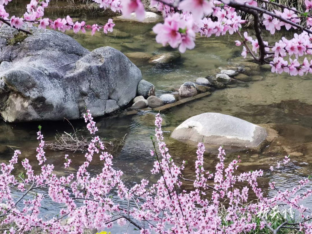 小河交错,道路阡陌,在河边、在山间、在屋舍旁皆是桃李相伴,花开时春风与落英成趣,炊烟与花色相宜,几声犬吠、偶有孩啼,令人心静神宜。无论行至何处,山头、路边、田野皆是繁花锦簇,桃红与李白错落,宛如拼色织锦为下村披上无可比拟的秀丽。